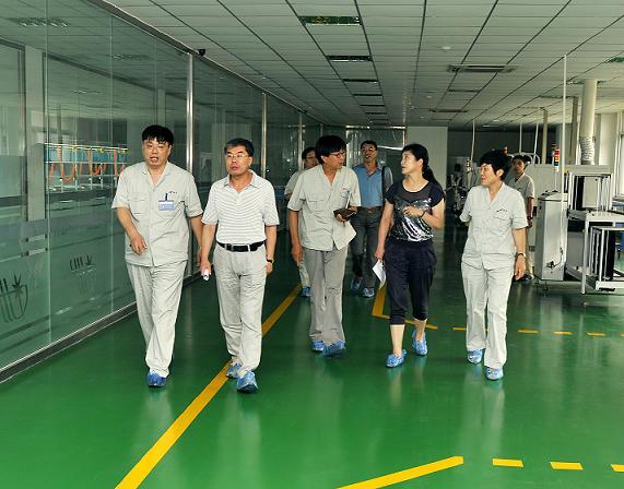 _                市中級(jí)人民法院副院長劉奇(左二),凌河區(qū)法院院長黃萍(右二)到我集團(tuán)生產(chǎn)現(xiàn)場實(shí)地調(diào)研。
