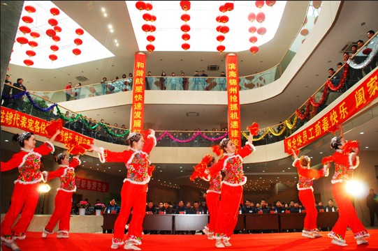 金牛送舊千家樂,玉虎迎春萬戶歡。2010年2月11日下午,距離中國人民的傳統(tǒng)節(jié)日--新春佳節(jié)還有兩天時(shí)間,為慶祝這一隆重的節(jié)日,由集團(tuán)黨委、工會(huì)、團(tuán)委聯(lián)合主辦的以“共建航星家園”為主題的2010年 迎新春聯(lián)歡會(huì),在產(chǎn)業(yè)園裝典一新的連廊大廳舉行。集團(tuán)黨委書記、董事長劉義專程從外地趕回出席聯(lián)歡會(huì)并對(duì)大家致以真摯的祝福,對(duì)過去一年全體員工的辛勤工 作表示感謝,對(duì)駐軍領(lǐng)導(dǎo)、代表的工作支持表示感謝,祝愿大家新春愉快,闔家幸福。聯(lián)歡會(huì)得到海軍駐錦代表室的高度重視,鮑海閣總代表、徐大偉副總代表等領(lǐng) 導(dǎo)親臨現(xiàn)場,與各部門、各分公司員工歡聚一堂,共迎虎年新春。